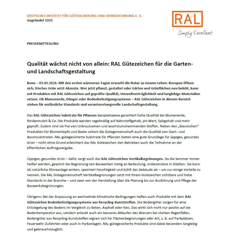 Qualität wächst nicht von allein: RAL Gütezeichen für die Garten- und Landschaftsgestaltung